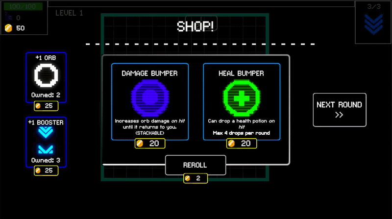 Bumpers will make the ultimate difference in your runs. They can temporarily upgrade your orbs or drop items like XP and health. Connect boosters into them for massive combos!
